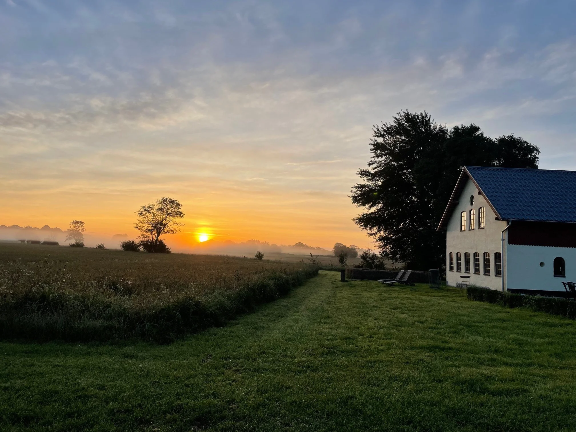 Her kan du starte dagen med frisk kaffe i gårdhaven og afslutte den med solnedgang over markerne.